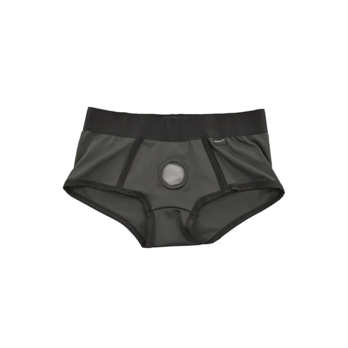 Imbracatura stile boxer Sportsheets pensata per chi cerca comfort e discrezione ogni giorno. Tessuto elastico e fascia in vita garantiscono una calzata salda; l'anello da 38,1 mm è compatibile con molti dildo standard e le due tasche per baliette aggiungono opzioni di stimolazione. Perfetta per chi vuole un harness morbido e portabile sotto gli abiti.