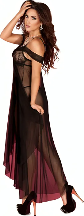 Scopri il fascino di questo babydoll lungo, realizzato in malla di alta qualità con dettagli in pizzo. Geeignete per chi ama sentirsi sensuale e a proprio agio.