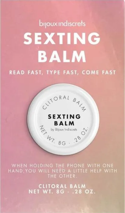 Questo è un balsamo clitorideo pensato per l'uso topico: il nome commerciale SEXTING BALM indica un prodotto profumato e leggero studiato per aumentare la sensibilità locale. Si tratta di un balsamo profumato per il clitoride con effetto calore e azione rapida (effetto dopo pochi secondi). Il formato è molto compatto, peso: 8gr, comodo da avere in borsa o nel cassetto del comodino.