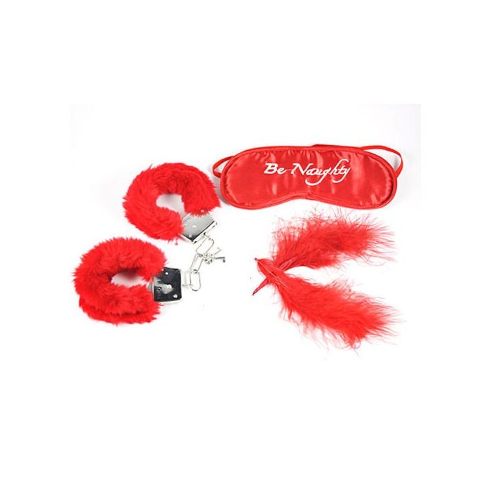 BE NAUGHTY SET ESPOSAS ANTIFAZ Y PLUMA BE NAUGHTY SET CUFF ANTIFAZ Y PLUMA