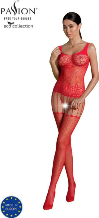 Un abito sexy che si adatta perfettamente alle curve del corpo femminile, esaltando ogni forma. Il bodystocking della collezione Eco di PASSION è realizzato con materiali riciclati, il che lo rende una scelta consapevole per chi cerca stile e sostenibilità.