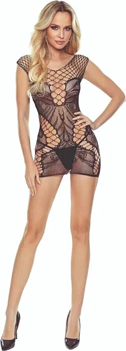 Bodystocking in pizzo nero che scivola sulla pelle, progettato per chi desidera esaltare la propria figura con eleganza. Ideale per serate speciali.