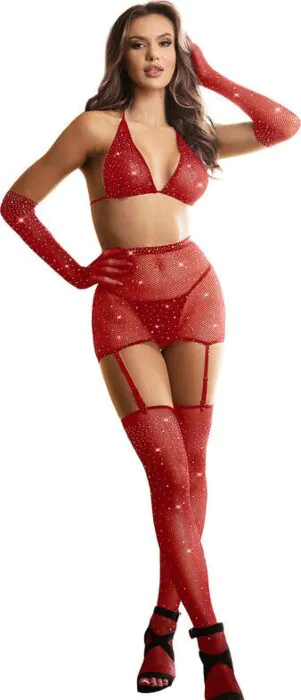 Bodystocking in rete con un design sexy e guanti coordinati, geeignete per chi vuole sentirsi irresistibile. Un tocco audace per ogni occasione speciale.