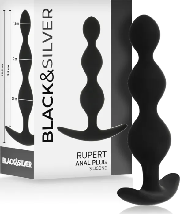 Catena per sfere anali BLACK&SILVER Rupert: 5 elementi in silicone morbido, molto flessibile e con base di presa per un utilizzo sicuro. Pensata per chi si avvicina al gioco anale o vuole un attrezzo per l'allenamento, offre inserimento graduale e controllo semplice. Unisex e sommersa, è una scelta pratica in negozio erotico online per chi cerca qualità e semplicità.