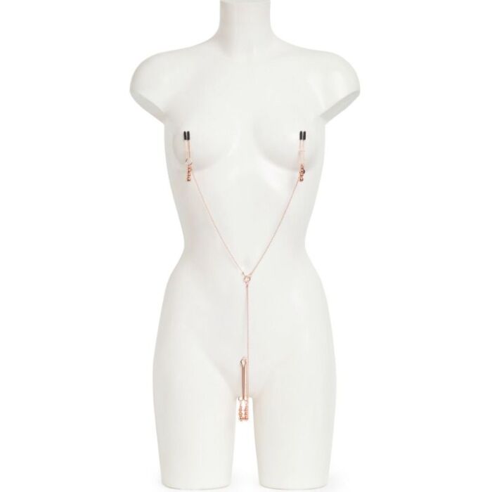 Indossa le catene sui capezzoli e clitoride per un'esperienza di piacere alimentata dalla stimolazione. Si consiglia di utilizzare un lubrificante a base d'acqua per massimizzare il comfort.