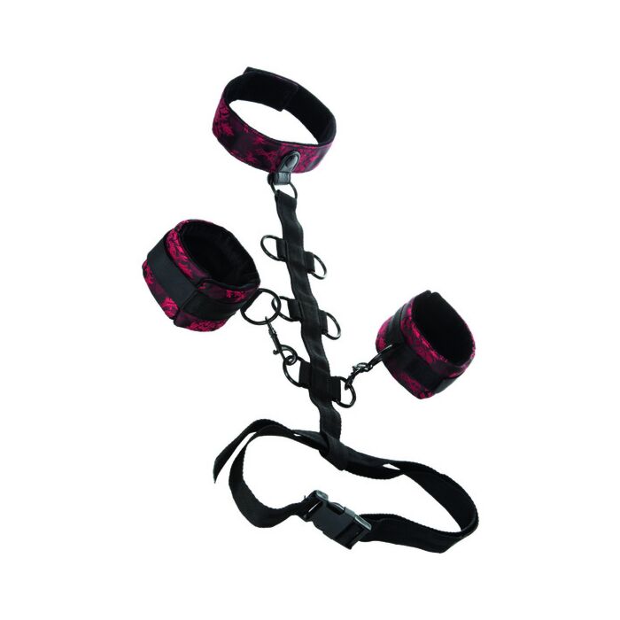 Elegante conjunto de collar con restricciones para el cuerpo con esposas para disfrutar al máximo de las más fantásticas experiencias.