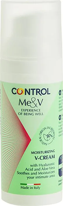 Idratazione profonda e protezione quotidiana per la tua zona intima. Control V-Cream combina le proprietà rinfrescanti dell'aloe vera con l'acido ialuronico per mantenere la pelle elastica e rigenerata. Composta per il 97% da ingredienti naturali, questa crema è un toccasana per la vulva, senza profumi e non lascia macchie.