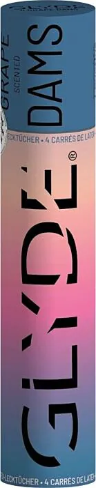 Dighe in lattice sottili e portatili SHEER GLYDE: fogli da 25 x 15 cm con aroma uva, in confezione da 4 toallitas monouso. Perfette se cerchi una barriera igienica per il sesso orale (possono essere usate anche per pratica vaginale o anale), facili da portare con te e pensate per ridurre il rischio di trasmissione di infezioni.