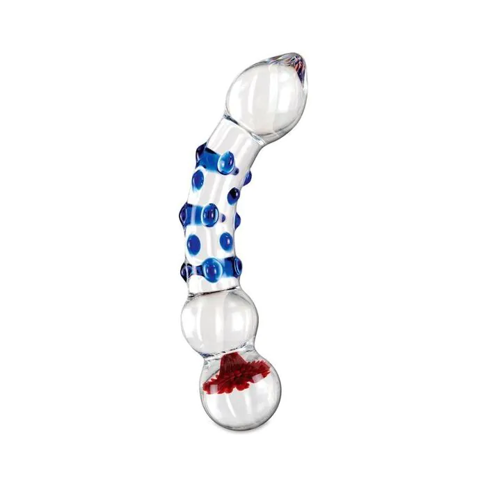 Cómo podrás ver en la imagen, este lujoso consolador cuenta con una figura que tiene una curvatura hacia arriba, la cual está pensada para estimular las el punto G y otras zonas profundas. Además de que cuenta con unas bolitas de cristal a lo largo de su cuerpo para estimular aún más al momento de la penetración con sus 16,5 x 3,5 cm. Y no podemos olvidar el detalle de la flor que se encuentra en la última bola del consolador, la cual le agrega un lujoso toque.