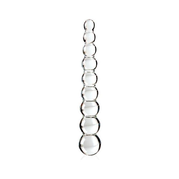 Il suo fusto è dotato di perle di diverse dimensioni che aumentano gradualmente, facilitandone l'inserimento e garantendo una stimolazione intensa. Con dimensioni di 22 x 2,5 cm e un diametro in costante aumento, questo dildo in vetro ti condurrà ad esplorare tutte le tue fantasie senza restrizioni, raggiungendo i punti più desiderati con totale comodità.