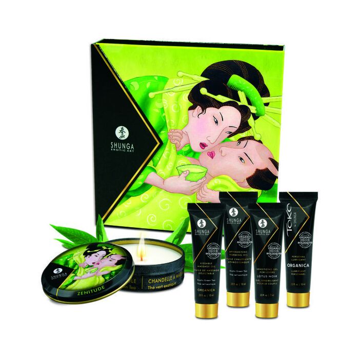 Lasciati sedurre dalla sensualità e dal mistero della collezione "Segreti di una Geisha al Tè Verde" di Shunga! Questo squisito kit di cosmetici erotici ti invita a esplorare i piaceri più intimi e sensuali in coppia, combinando aromi e sapori afrodisiaci per stimolare tutti i tuoi sensi.