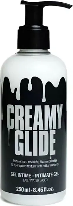 CREAMY GLIDE è un gel intimo a base d'acqua con un aspetto lattiginoso pensato per ricreare l'effetto visivo dello sperma. È studiato per chi vuole realismo nelle scene o nei giochi erotici—dalla foto al video, fino all'uso con consolatori eyaculanti. La sensazione è fluida e molto scivolosa, ispirata alla texture del Nuru, quindi crea quei fili setosi tra i corpi che cerchi senza appiccicare.