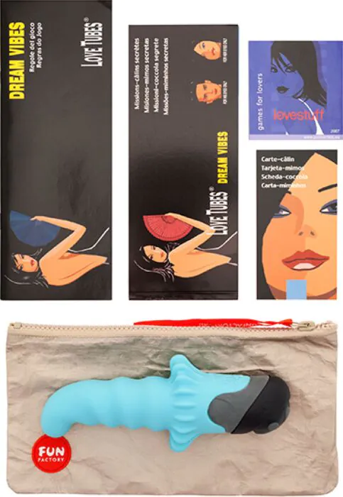 Divertimento e intimità si fondono nel Gioco Dream Vibes, un'esperienza che trasforma le serate in coppia in un'avventura erotica. Include un vibratore Stubby sumergibile di Fun Factory e un insieme di 14 missioni da completare insieme. Consigliato per chi cerca di esplorare il piacere in modo ludico e coinvolgente.