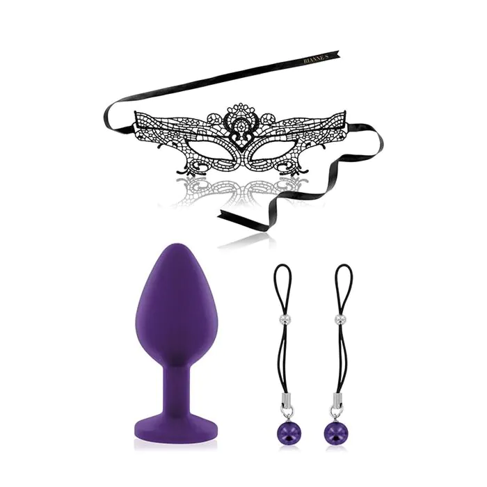 Ti presento il Kit Rianne S Ana.s Trilogy Set II: un set per giochi sensoriali e bondage leggero che mette insieme tre elementi semplici ma efficaci. È pensato per chi vuole giocare in coppia con eleganza e discrezione, alternando privazione sensoriale e stimoli mirati. Nel kit trovi antifaz, plug e ciondoli per capezzoli — tre accessori che permettono di variare intensità e ritmo senza attrezzi complessi.