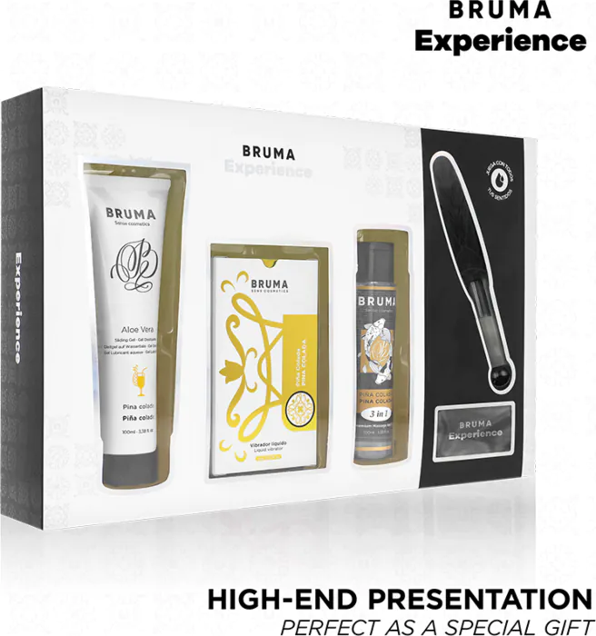 Vivi un'esperienza di piacere vibrante con il Kit Tentazione Dolce Piña Colada di BRUMA, che include un vibratore liquido che moltiplica l'effetto del desiderio. Con accessori come lubrificante, olio, piuma e venda, questo kit è pensato per le coppie che vogliono uscire dalla routine e divertirsi.