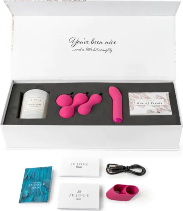 Un cofanetto pensato per chi vuole un approccio curato al piacere intimo: include un vibratore bullet per stimolazione G e clitoridea, il set progressivo di palline Kegel Ami, una candela da massaggio alla Jasmine & Lily e una Box of Treats. Adatto a coppie e a chi si avvicina ai giocattoli erotici, offre versatilità e materiali attenti alla pelle.