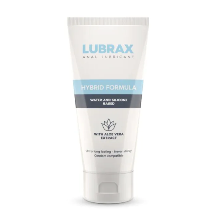 Lubrax è un gel lubrificante ibrido che unisce i benefici dell'acqua e della silicone, consigliato per chi cerca scorrevolezza e comfort duraturo. Arricchito con Aloe vera per una sensazione di morbidezza.