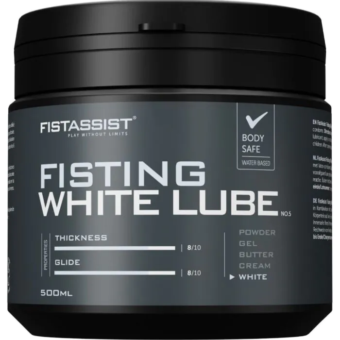 Gel bianco a base d'acqua pensato per chi vuole un effetto visivo marcato e una scorrevolezza più sostenuta rispetto ai lubrificanti fluidi. Perfetto per giochi intensi, fisting o scene in cui l'aspetto conta; mantiene una consistenza cremosa e non diventa appiccicoso. Consigliato a chi cerca texture densa; se preferisci qualcosa di leggero, valuta lubrificanti più fluidi.