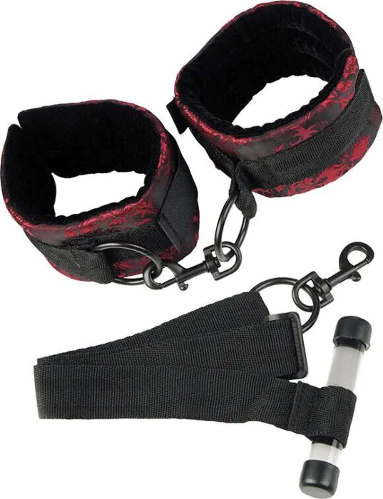 Se vuoi provare le sensazioni del bondage senza attrezzi fissi, queste manette per porta CALEXOTICS Scandal sono un punto di partenza elegante e pratico. Si agganciano alla maggior parte delle porte interne standard e, grazie al montaggio smontabile, puoi usarle anche come tradizionali manette dietro la schiena. La fascia esterna in tessuto di design rosso e nero unisce estetica e discrezione, mentre l'interno ultraso e afelpato protegge la pelle durante le sessioni più lunghe.
