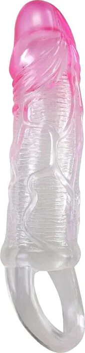 Stimolazione interna intensa con texture aggiuntiva grazie a questa guaina di allargamento in TPR. Con 2 cm di estensione, offre una sensazione naturale e avvolgente, mentre l'anello per i testicoli mantiene l'estensore in posizione, prolungando l'erezione.