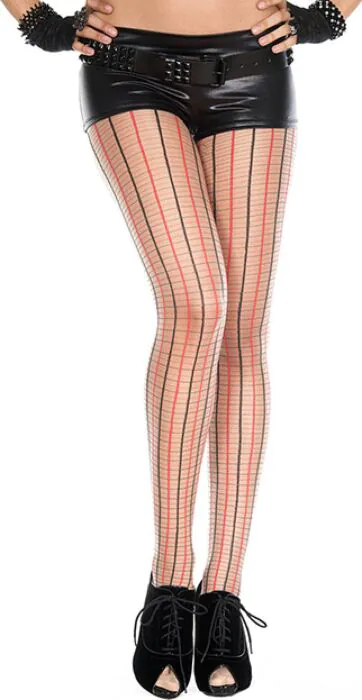 Queste calze/panty di Music Legs si distinguono per il motivo a quadri in rosso e nero, un dettaglio grafico che dà personalità al capo. Te le presenterei come l'accessorio che trasforma un look semplice in qualcosa di più deciso: si portano bene sotto abiti corti, con gonne o per occasioni in cui vuoi puntare sull'impatto visivo.