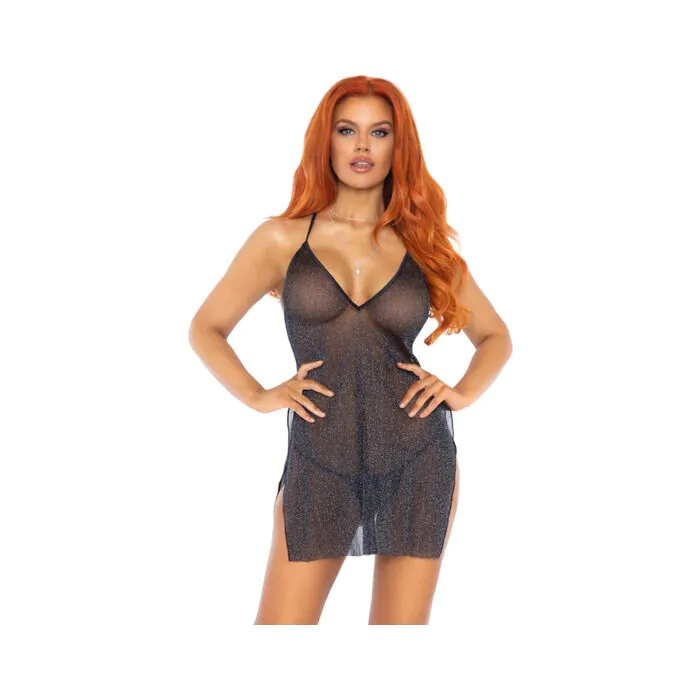 Mini vestido lurex semitransparente - plata