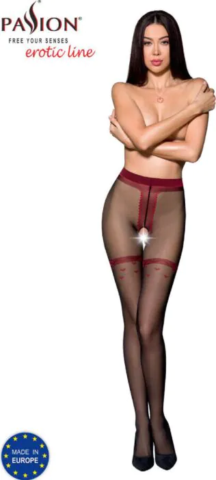 Eleganza e comfort si uniscono nelle medias PASSION TIOPEN 019, caratterizzate da un'apertura tra le cosce e una decorazione distintiva. Realizzate con un mix di nylon e elastan (87.2% PA, 12.8% EA), offrono una vestibilità che esalta le curve femminili senza rinunciare alla comodità.