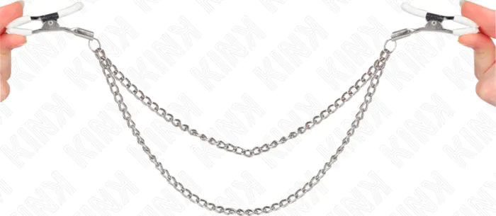 Sperimenta il piacere del controllo con le pinze per capezzoli KINK. Le catene sottili aggiungono un tocco di sensualità e stimolazione. Perfette per chi ama esplorare il BDSM.