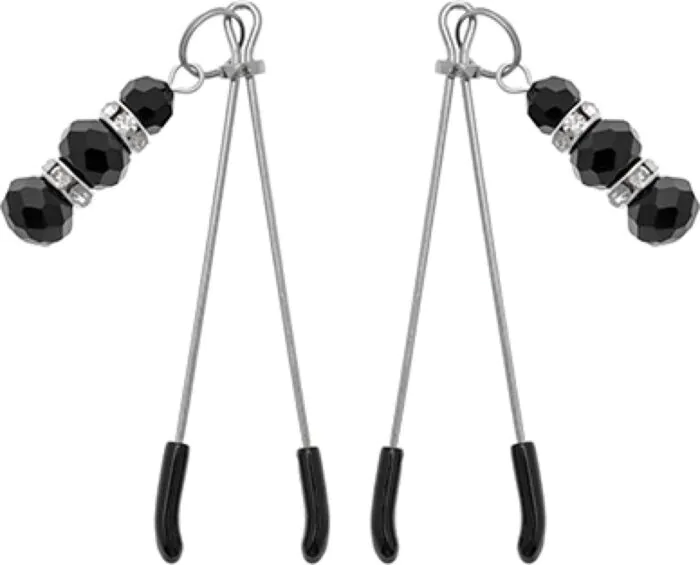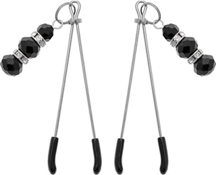 Le Nipple Clamps NEKO sono pinzette per capezzoli dal look elegante in argento e nero, pensate per chi vuole modulare la pressione e aggiungere movimento sensoriale. Sono un sex toy adatto a chi cerca un accessorio per focalizzare la stimolazione del capezzolo durante giochi bondage o momenti intimi. Le piccole perline nere pendenti non sono solo decorative: con i movimenti aumentano la percezione grazie al peso e allo sfregamento.