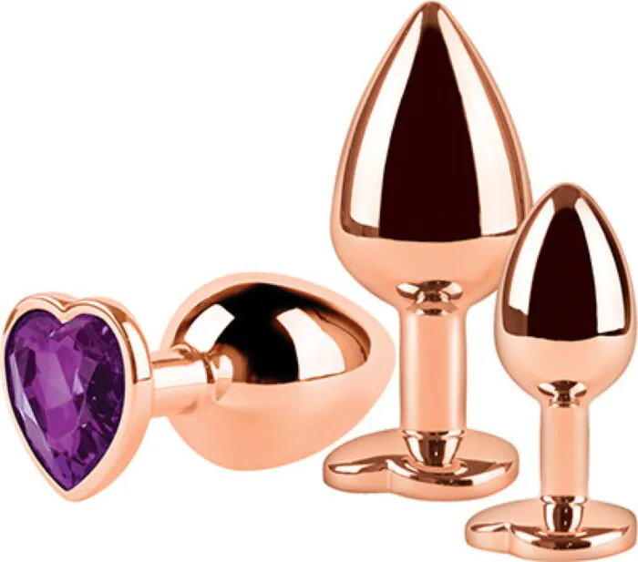 Set di 3 plug anali in metallo pensati per chi vuole un avvicinamento graduale alla penetrazione anale. Hanno punta conica per un inserimento facilitato, base piatta con elemento gioiello a forma di cuore per una presa sicura e la possibilità di giocare con temperature. Perfetti se cerchi un sex toy solido, facile da pulire e adatto all'uso con lubrificanti sia a base acqua sia siliconici.