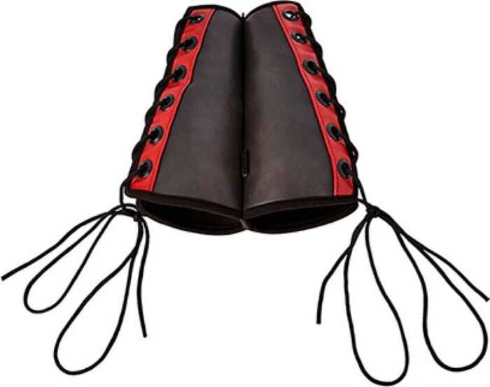 Indossa le manette sui polsi e regola i lacci laterali per un fit consigliato. Assicurati di comunicare apertamente con il tuo partner durante il gioco. Per una migliore esperienza, considera l'uso di un lubrificante a base d'acqua.