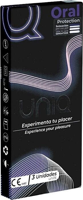 Protezione durante il sesso orale senza compromettere il piacere. La maschera orale UNIQ, realizzata in resina sintética AT-10, previene il passaggio di fluidi corporei, riducendo il rischio di trasmettere malattie sessualmente trasmissibili. La sua consistenza morbida e l'assenza di lattice la rendono comoda e sicura per tutti.