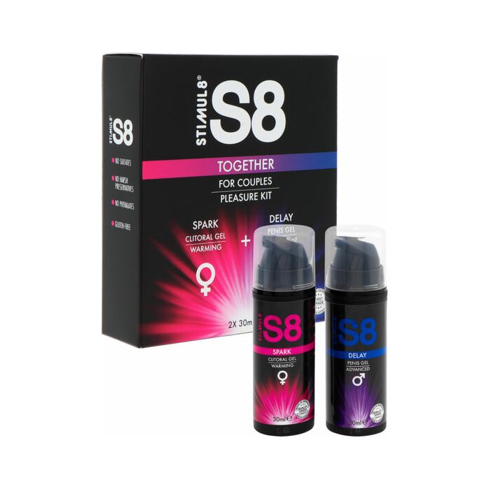 Scopri il nuovo S8 Together Kit, il set perfetto per condividere momenti di passione con il tuo partner! Questo incredibile kit include il gel clitorideo S8 Spark per lei e il gel S8 Delay per lui, due prodotti progettati per potenziare il piacere e l'intimità di coppia.