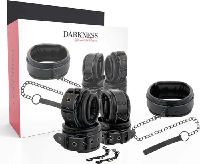 Sets Bondage DARKNESS - Collare e manette in pelle di alta qualità