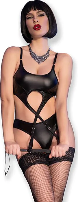 | Contenuto del set | Top con tirantes de liga regulables, tanga crotchless, medias incluse, frustino in silicone |