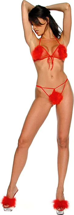 Per chi cerca lingerie giocosa e sensuale: set trasparente con pom pom di piume.