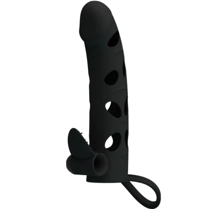 Fodera in silicone PRETTY LOVE MALE che aggiunge lunghezza e stimolazione: micro-bala vibrante, texture per il clitoride e anello scrotale per maggior controllo. Pensata per coppie e per chi cerca supporto con eiaculazione precoce o disfunzione erettile. Prodotto resistente all'acqua, semplice da usare e compatibile con lubrificanti a base acqua — ottima scelta come sex toy pratico e discreto.
