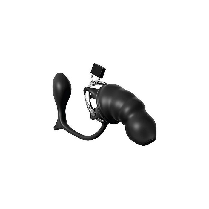Scopri un mondo di sensazioni con la Custodia di Castità con Plug - Nero