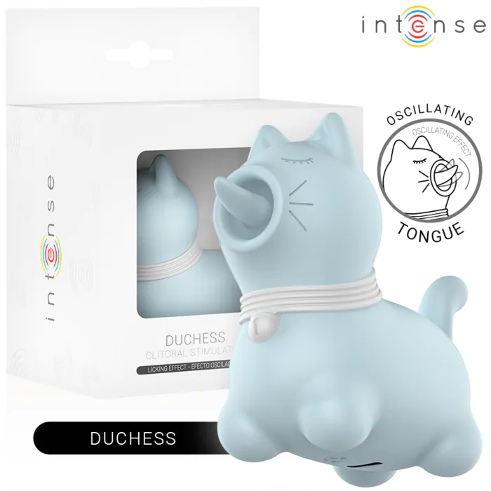 Il Duchess di Intense Fun è un stimolatore clitoride dal design affascinante, che riproduce il movimento di una lingua reale. Il suo colore blu e la forma ergonomica lo rendono ideale per chi cerca un piacere intenso e avvolgente. Scopri sensazioni uniche e rimanere soddisfatto, sia da solo che in coppia.