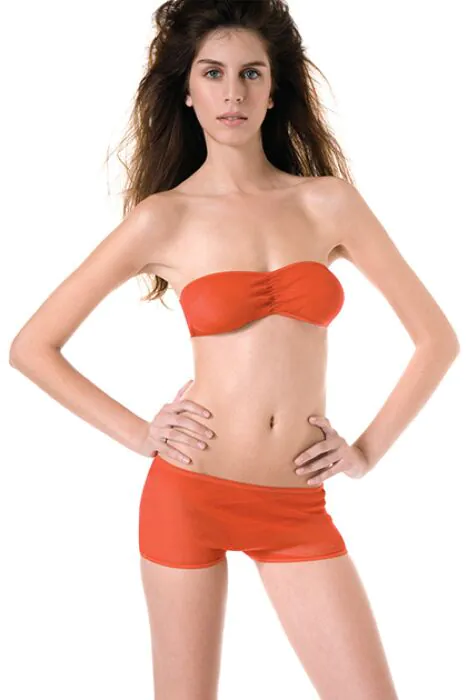 Top que solo cubre los pecho con costura en el medio para mejor sujeción y mini short de tela muy ajustada al cuerpo.Color: Rojo