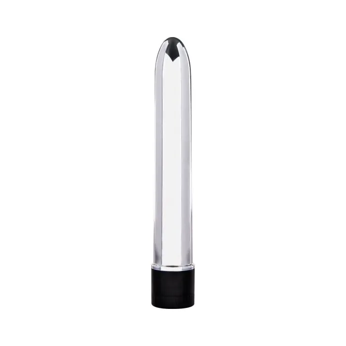 Clásico vibrador de fabricado en plástico metalizado con acabado rojizo.