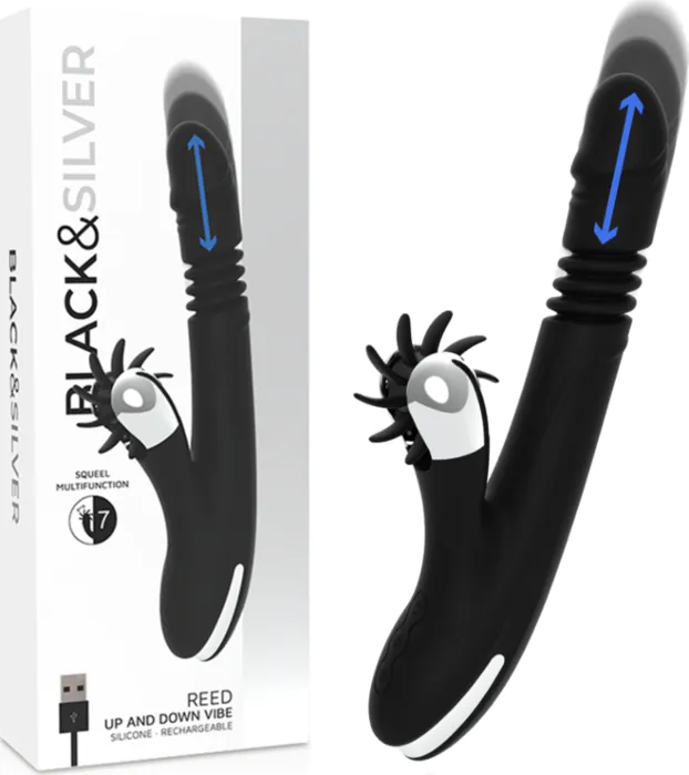 Ti spiego come te lo direi in negozio: il BLACK&SILVER REED UP & DOWN è un vibratore Punto G che unisce un movimento di spinta "arriba y abajo" con un sistema multitasking per stimolare il clitoride. La linea è pensata per chi vuole sentire una stimolazione interna precisa e contemporaneamente lavoro clitorideo con più pattern. La finitura in silicone super morbido rende il contatto molto più confortevole e il motore è stato ottimizzato per potenza e durata.